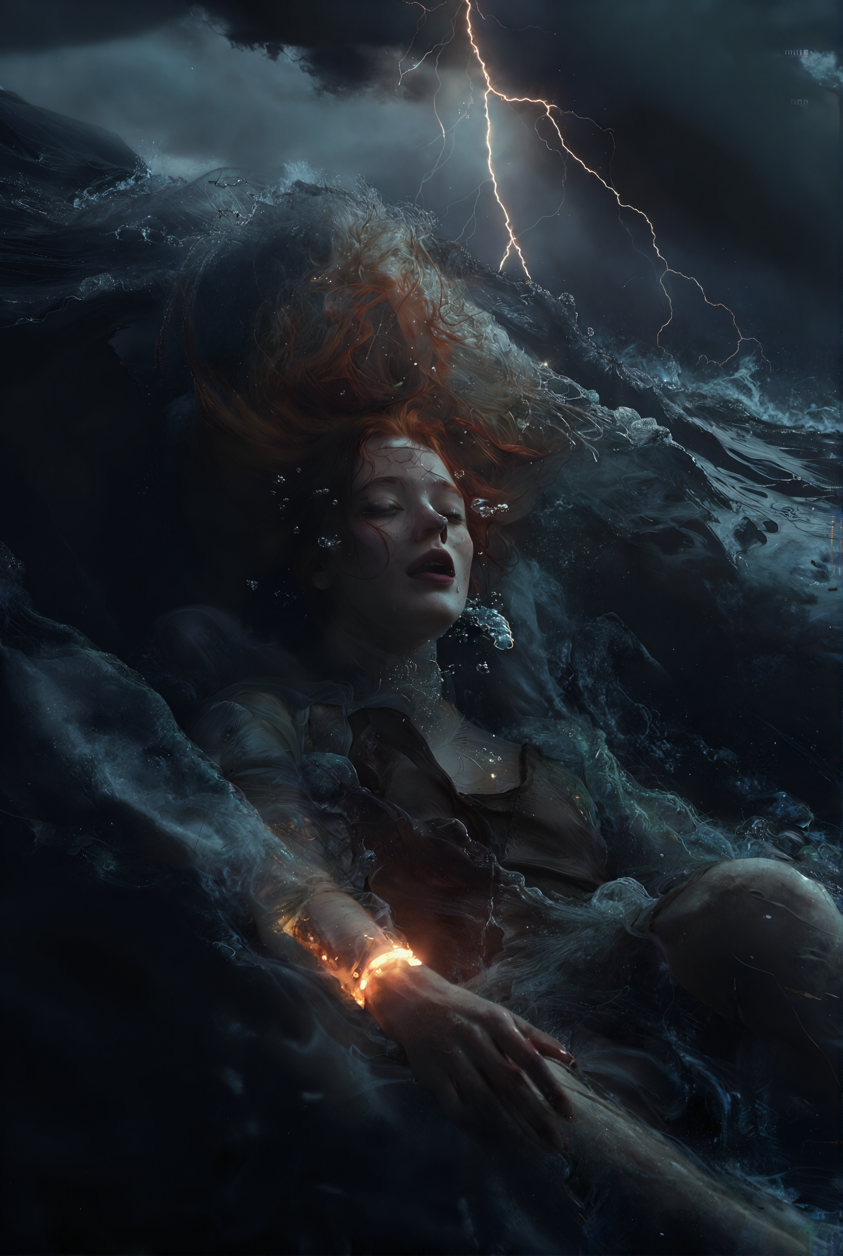 The cold swallowed her whole before she even understood what was happening. Naya was hurled beneath the surface, rolled and battered by the storm like a feather inside a raging forge. Salt burned her throat. Her breath shattered. She broke through the surface for a single heartbeat, saw a sky torn by lightning—then another wave crushed her.
