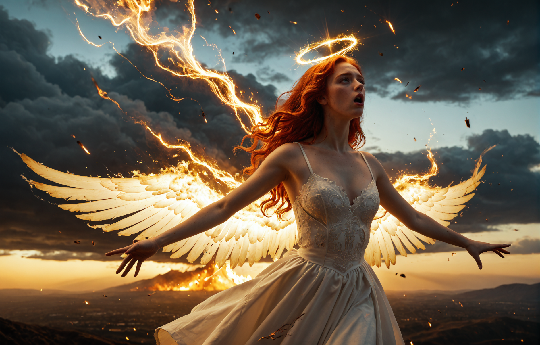 La chute était brutale. Ses majestueuses ailes d’un blanc immaculé un instant plus tôt, se craquelèrent comme du verre incandescent. Chaque plume s’embrasa avant de s’éparpiller en cendres lumineuses. Pour la première fois de sa longue existence, Naya ressentie ce que les Hommes appelaient la douleur. Une brûlure cuisante déchirait son dos et embrasait son âme.